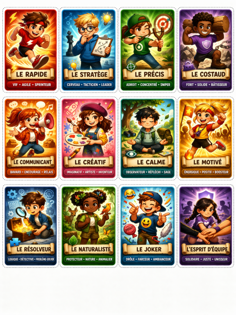 Les enfants passent plusieurs épreuves pour découvrir leur super-pouvoir : invisibilité, vitesse, intelligence ou coopération.